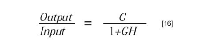 可以表明,系統(tǒng)的閉環(huán)傳遞函數(shù)如方程16所示。這也許是控制理論中最重要的關(guān)系。分母1+GH稱為特征方程,因?yàn)槠涓趶?fù)平面的位置決定了系統(tǒng)的穩(wěn)定性。從這個(gè)方程的形式中,還可以立即看出其他幾個(gè)性質(zhì)。