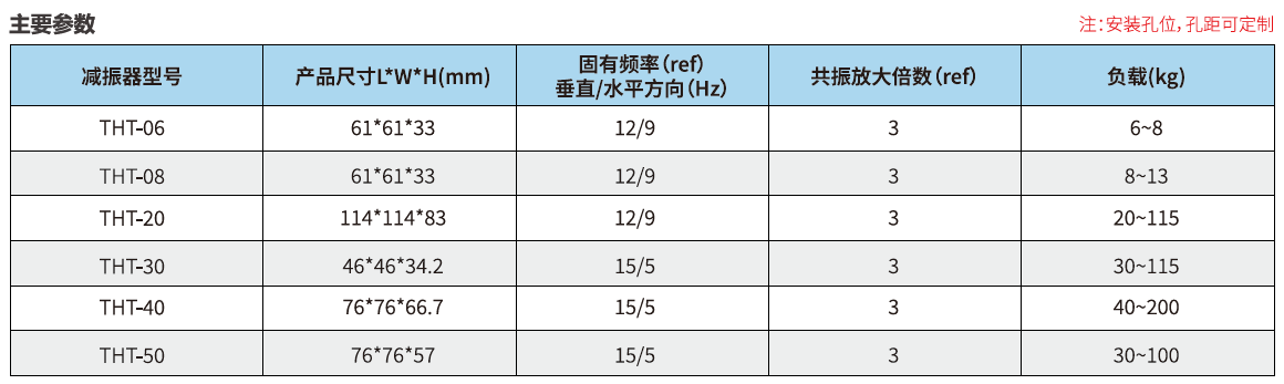 THT 彈性減振器具有出色的阻尼性能,特別適合應(yīng)用于帶有高加速度位移平臺(tái)的制造設(shè)備??商娲鹉z腳墊,機(jī)械彈簧等減振產(chǎn)品。